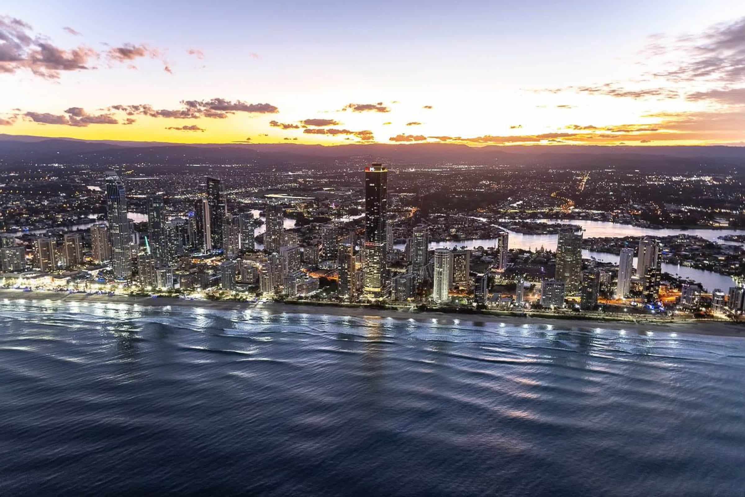Take to the skies with our Gold Coast Beaches helicopter tour. From the comfort of our high-quality helicopter, you’ll pass over some of Australia’s most famous tourist destinations, including Dream World, Movie World Wet ‘n’ Wild. Wave hello to the surf-goers on some of Australia’s most iconic beaches.
